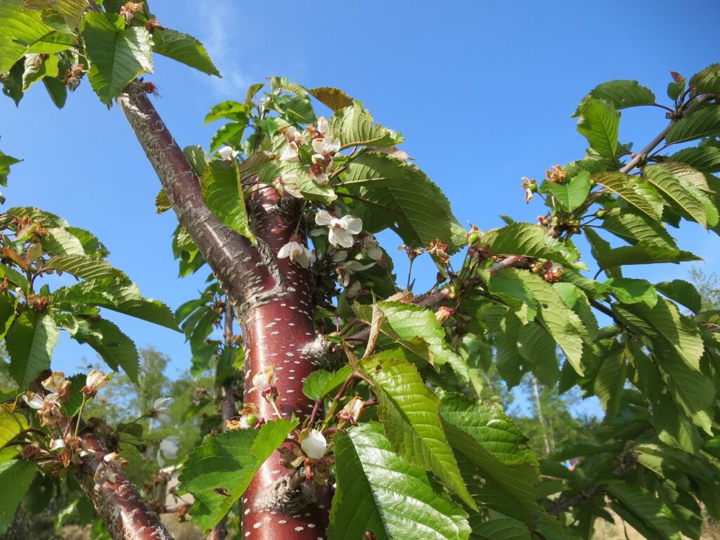 週中に高山のさくらんぼ農園に行ってきました。今年は、昨年より約3週間ほど花が咲くのが早い状態で消毒作業が追いついていない状況です。行った当日もだいぶ標高の高いところなのですが気温は30度近くあって作業中は汗だくでした。また、来週にまた消毒作業に行く予定です。