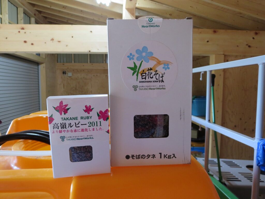実験で、少しそばの実を撒いてみました。秋に花が咲くか楽しみです。