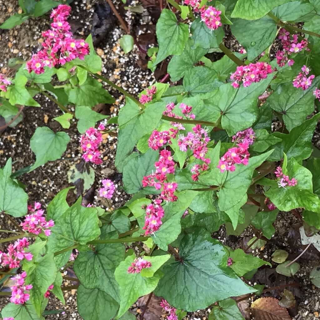 先月に、実験で種まきしたそばの花が咲いていました(高根ルピーという品種です)赤い花が咲くそうですが・・・