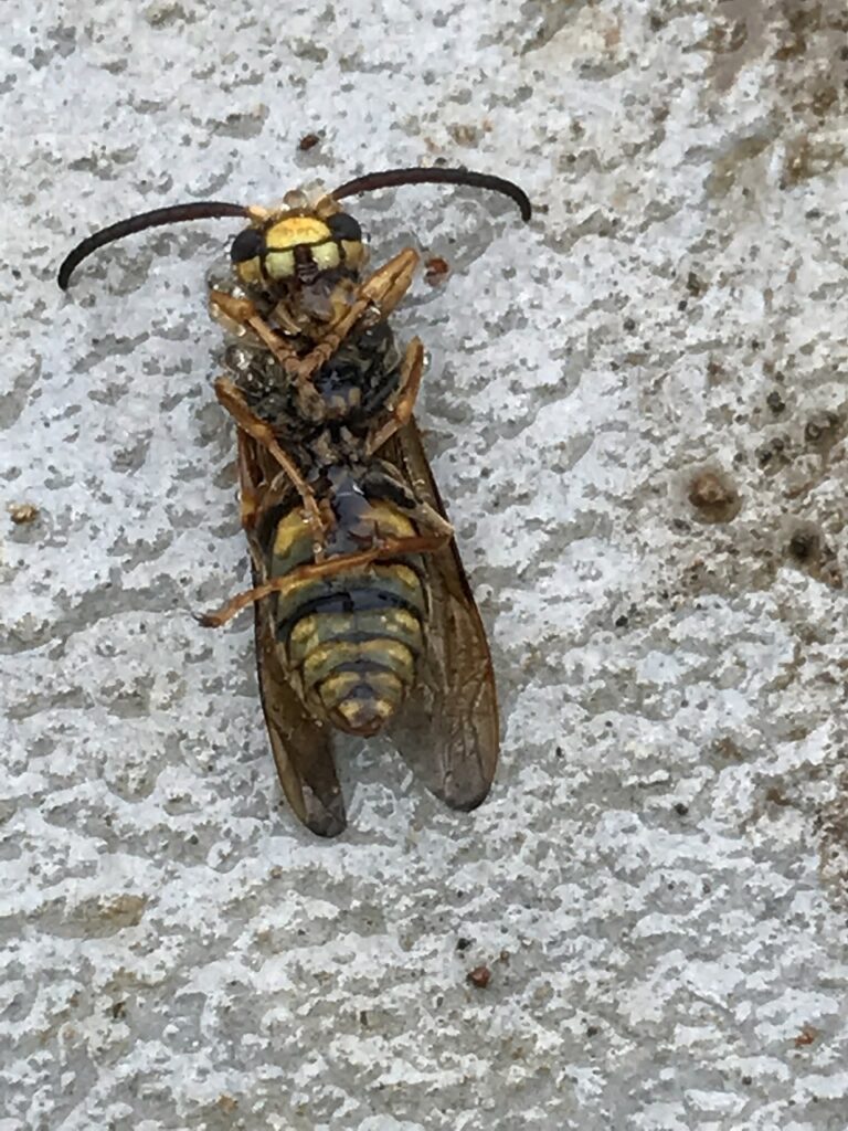 ちなみにいたのは、こんなスズメバチです。(死骸ですが・・・)
