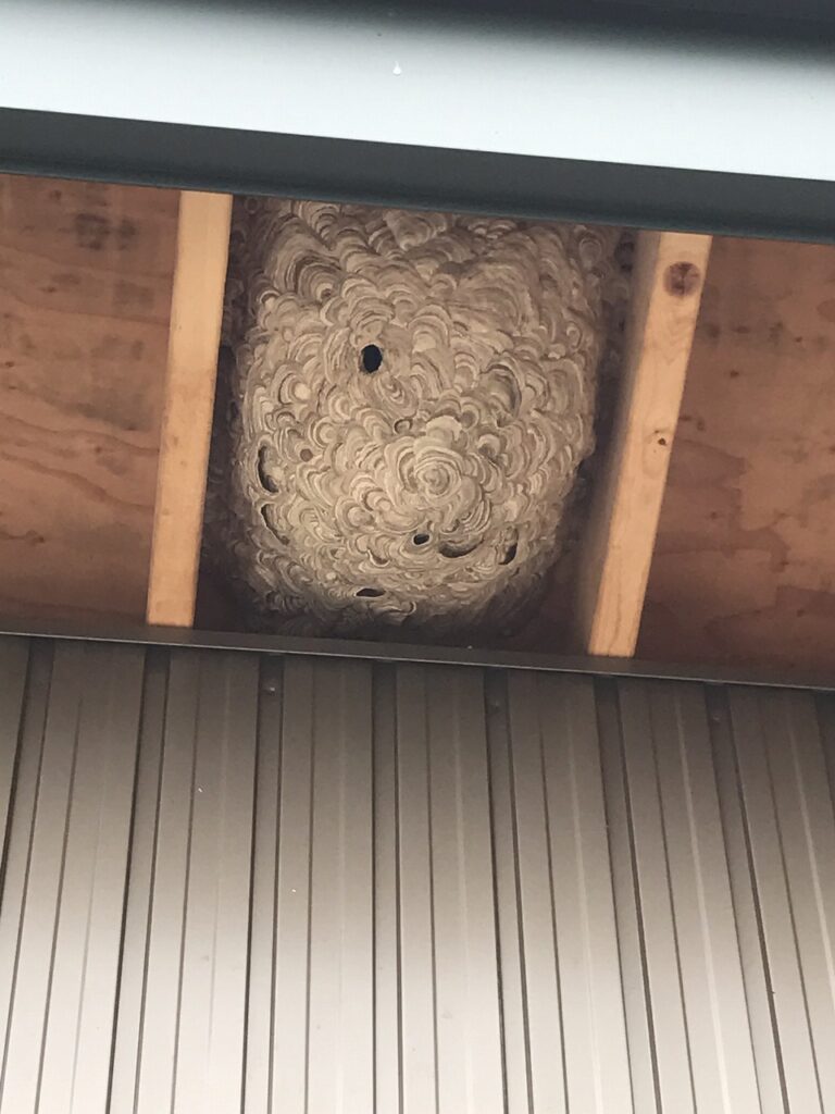 前回訪問したときに作業場の上にスズメバチの巣がつくられていました!!